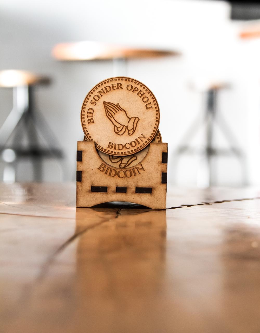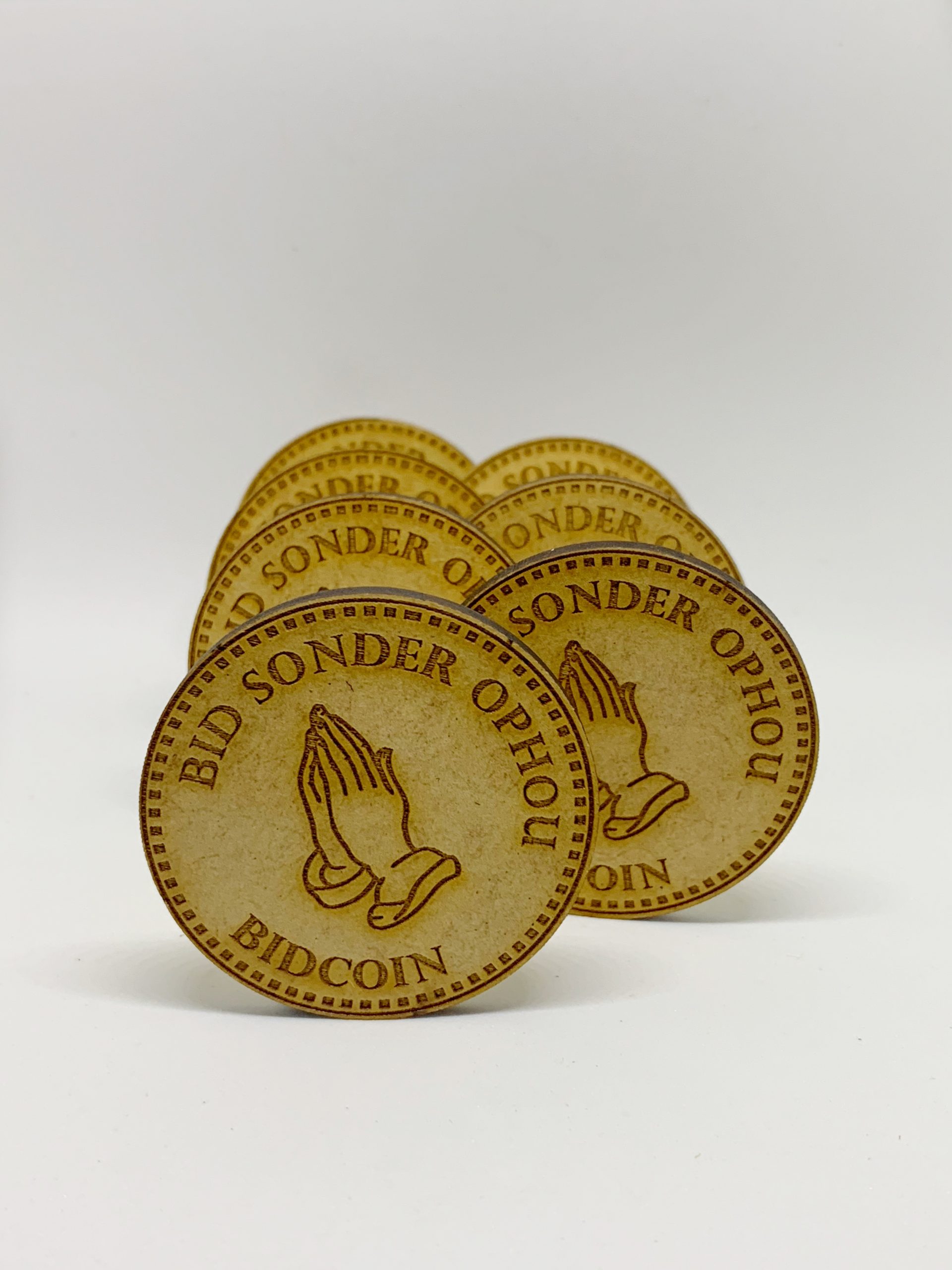 • Seven (7) MDF Bidcoins with different Scriptures engraved on;